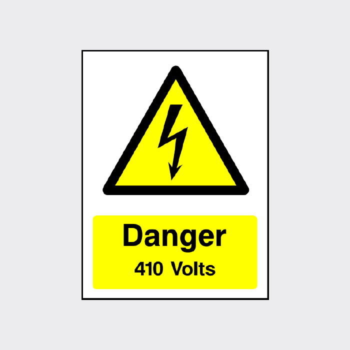 Danger 410 Volts Sign (ELEC0036) is a crucial safety warning for areas containing 410-volt electrical systems. This sign helps prevent serious accidents by warning staff, contractors, and visitors about the risks of high-voltage equipment. It's perfect for use in industrial settings, construction sites, and any area where electrical hazards may be present.