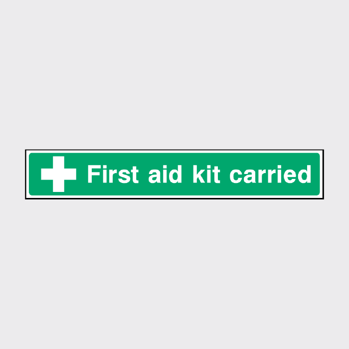 Ensure clear identification of first aid availability with this first aid kit carried sign. Ideal for company vehicles, emergency response teams, and worksite personnel, it indicates that a first aid kit is on hand for immediate use. By displaying this sign, businesses promote safety and compliance with health and safety regulations.