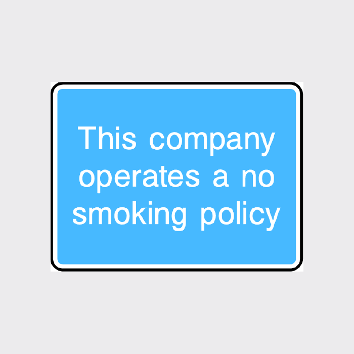 The This Company Operates a No Smoking Policy Sign is available in two practical sizes to suit different locations: